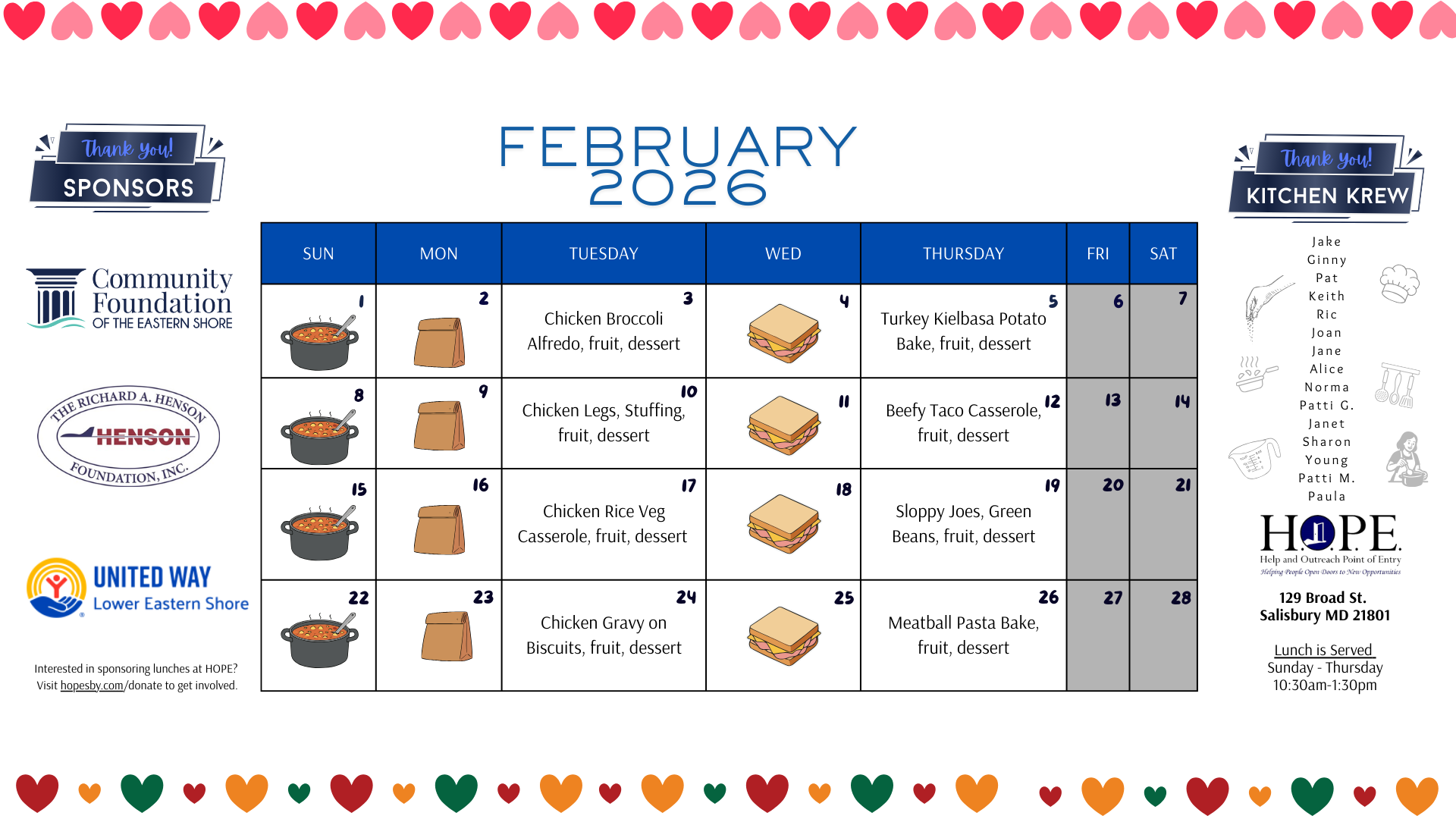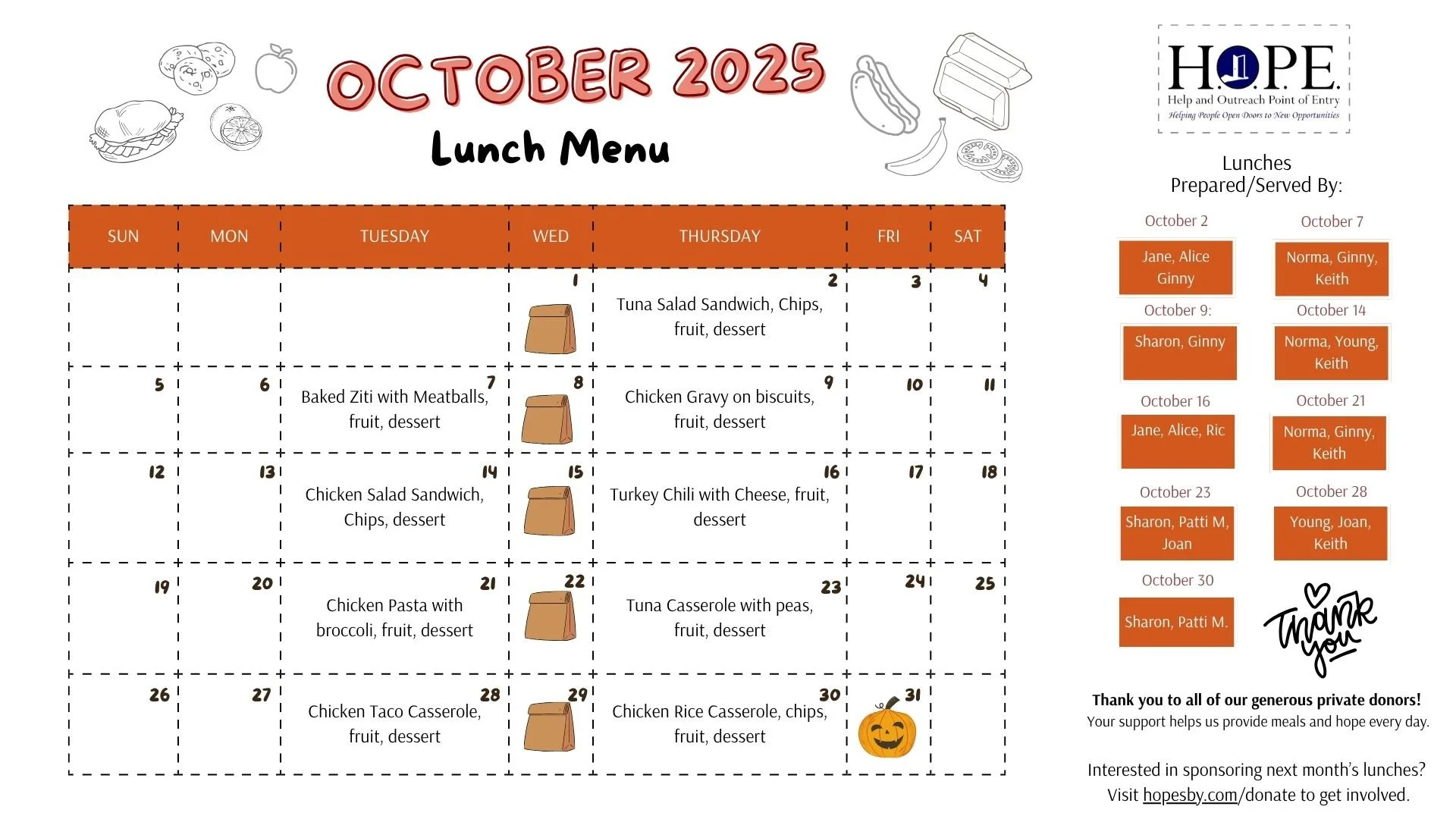 If you’re interested in partnering with HOPE’s Lunch Program, please contact us to learn more about available dates and sponsorship opportunities.