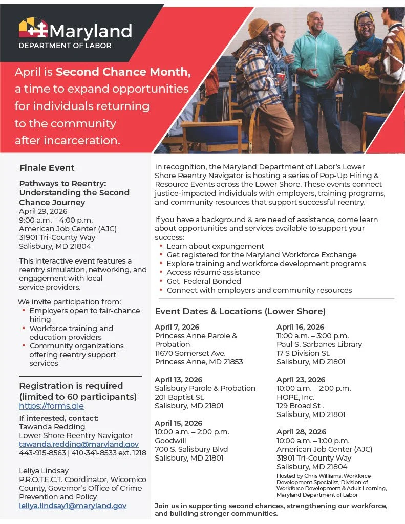 These pop-up events are designed to connect justice-impacted individuals with employers, training programs, and community resources that support successful reentry and long-term stability. Attendees can learn about expungement, workforce training opportunities, résumé support, bonding programs, and more.
